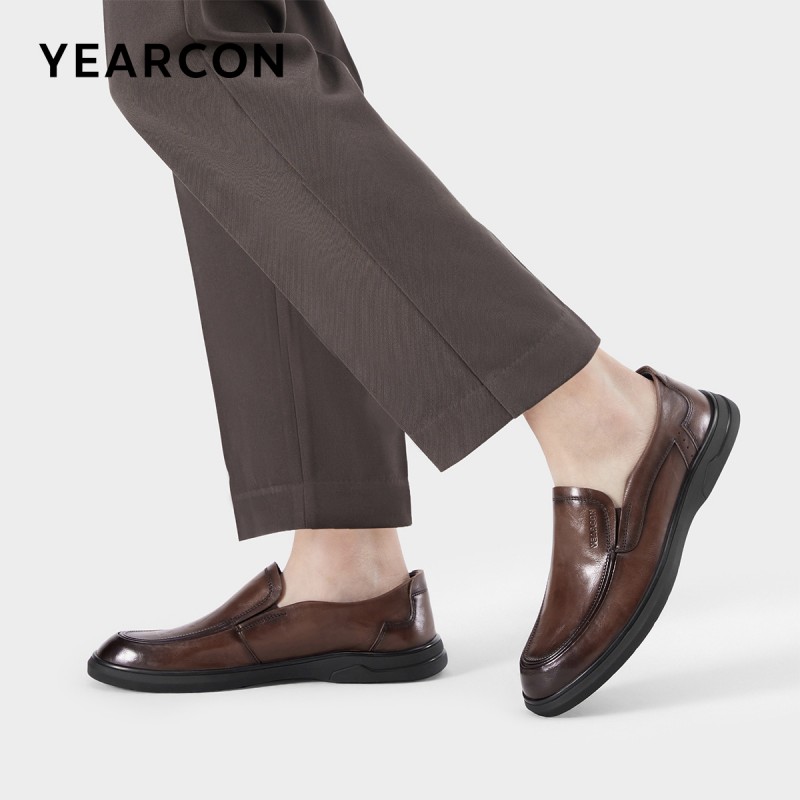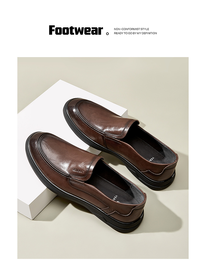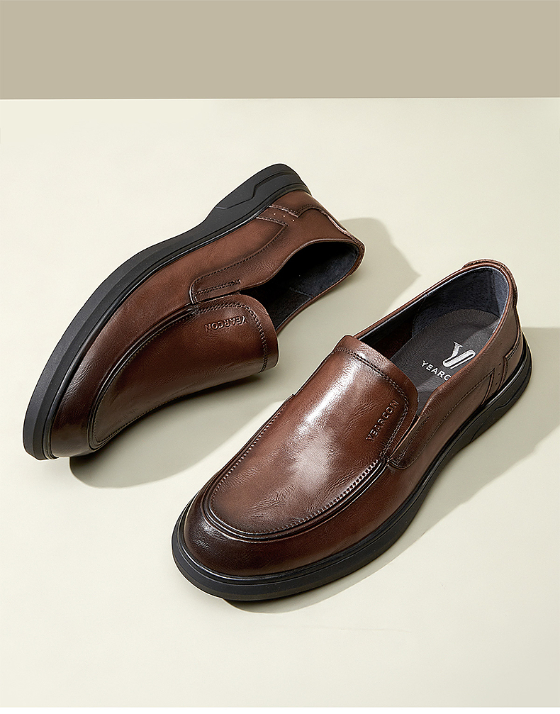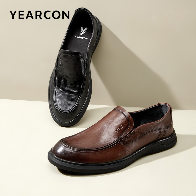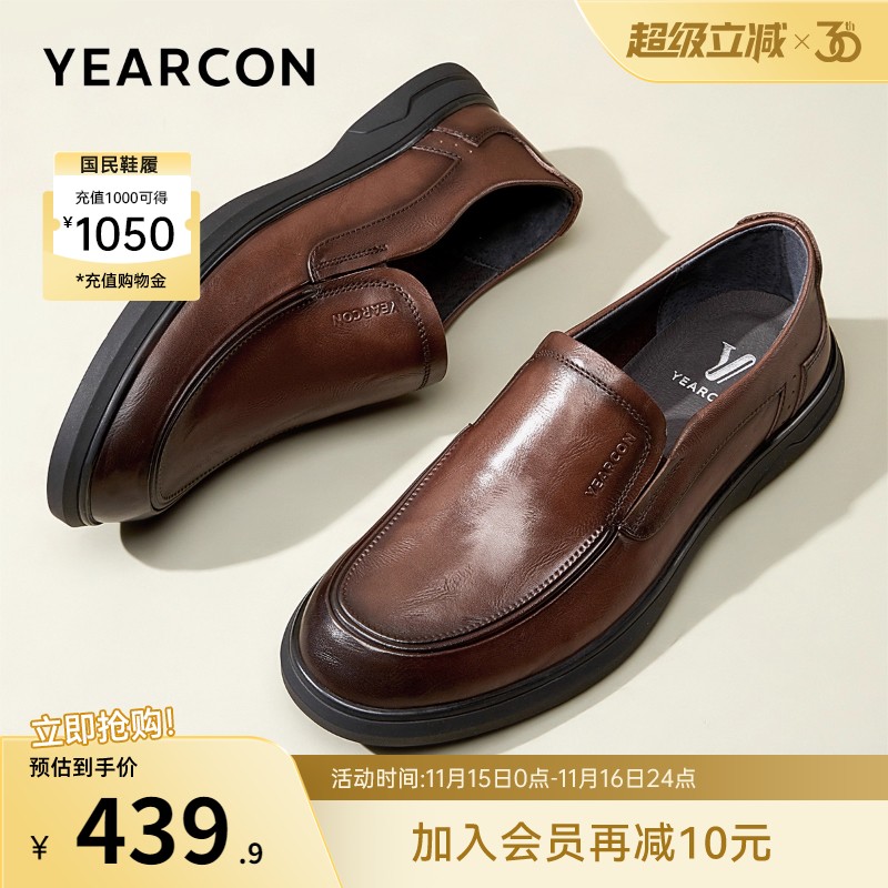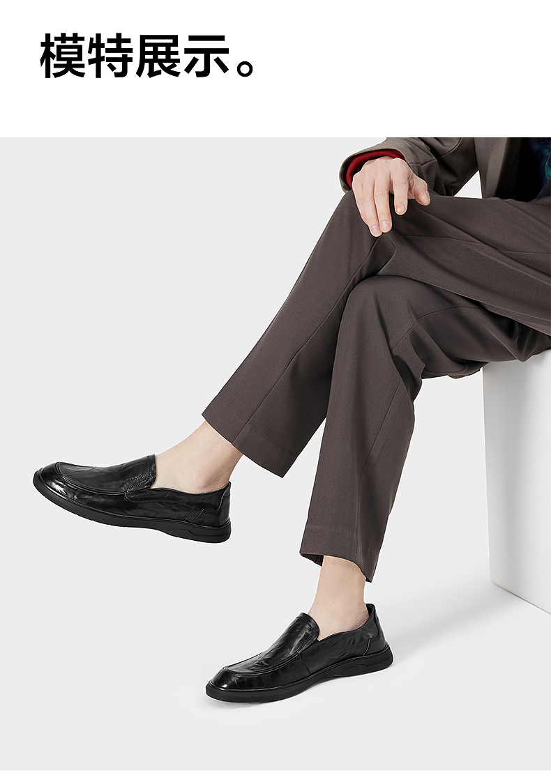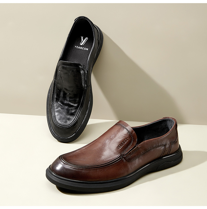 意尔康男鞋2025新款商务休闲皮鞋真皮乐福鞋一脚蹬软底中年爸...