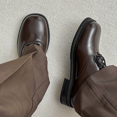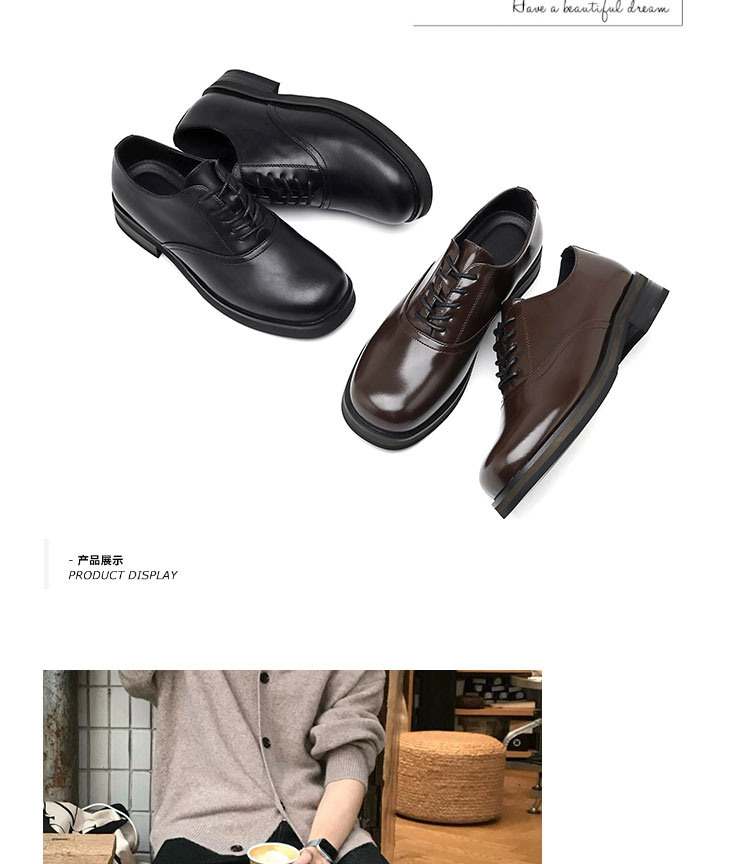 产品名称 : 棕色皮鞋男款结婚新郎高级感方头情侣圆头乐福鞋小众休闲德比鞋男