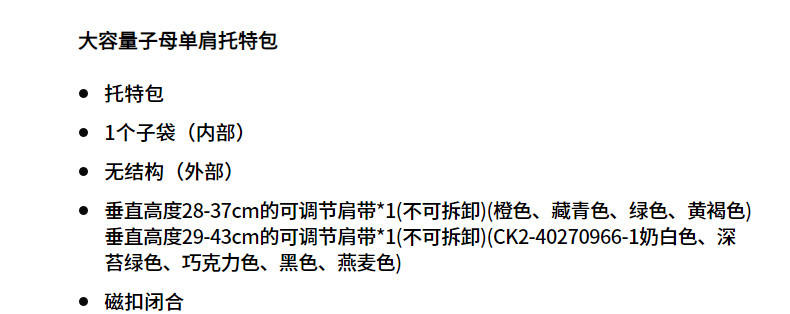 | 产品名称 : | CHARLES&KEITH秋冬女包CK2-40270966-1大容量子母单肩托特包女包 |