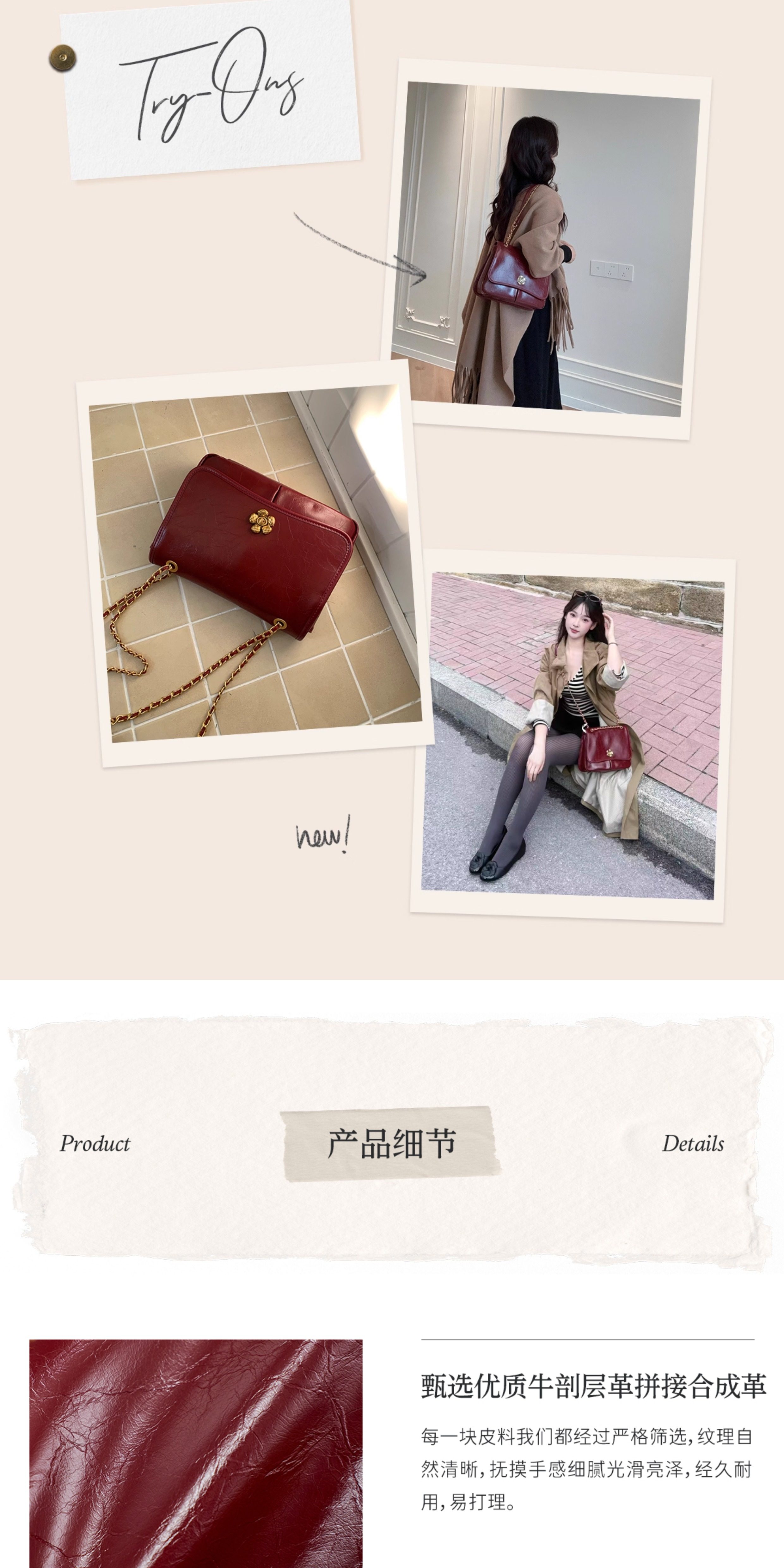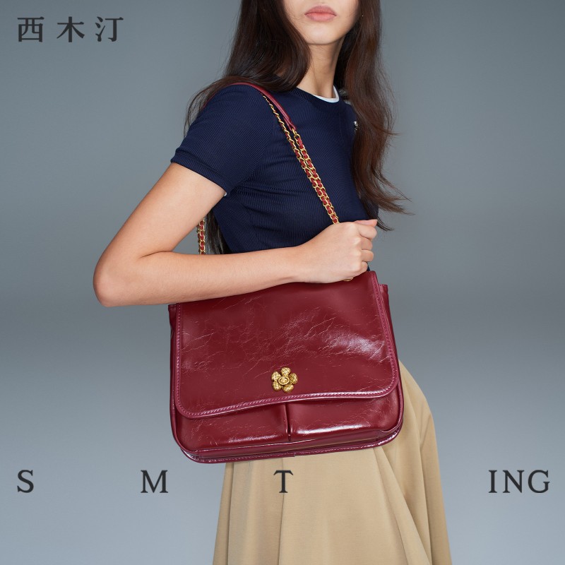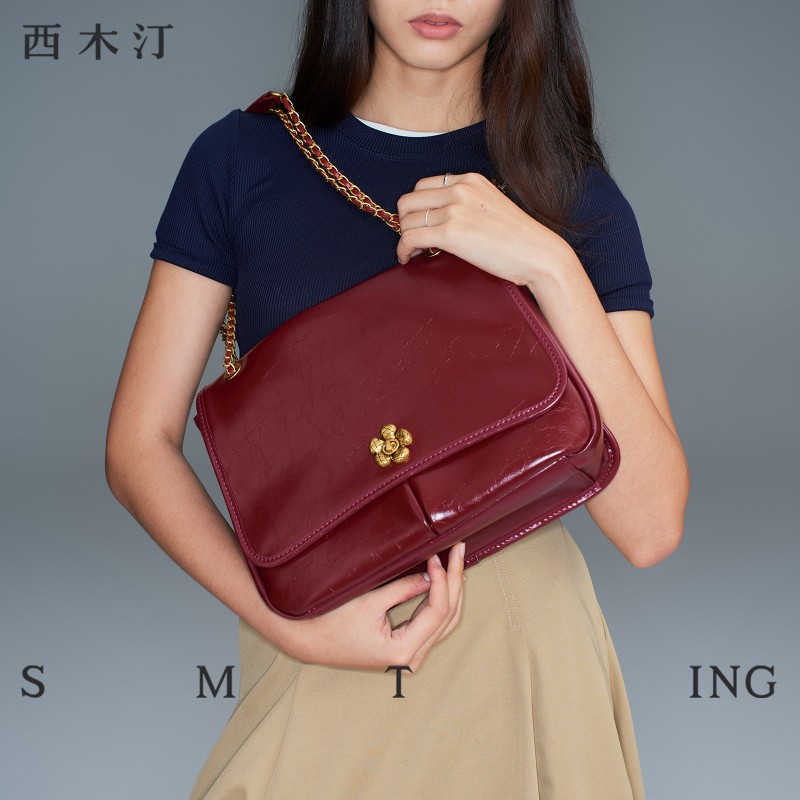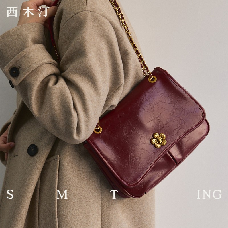 【西木汀】无微不至 链条斜挎包女新款红色婚包牛皮包包新娘礼物