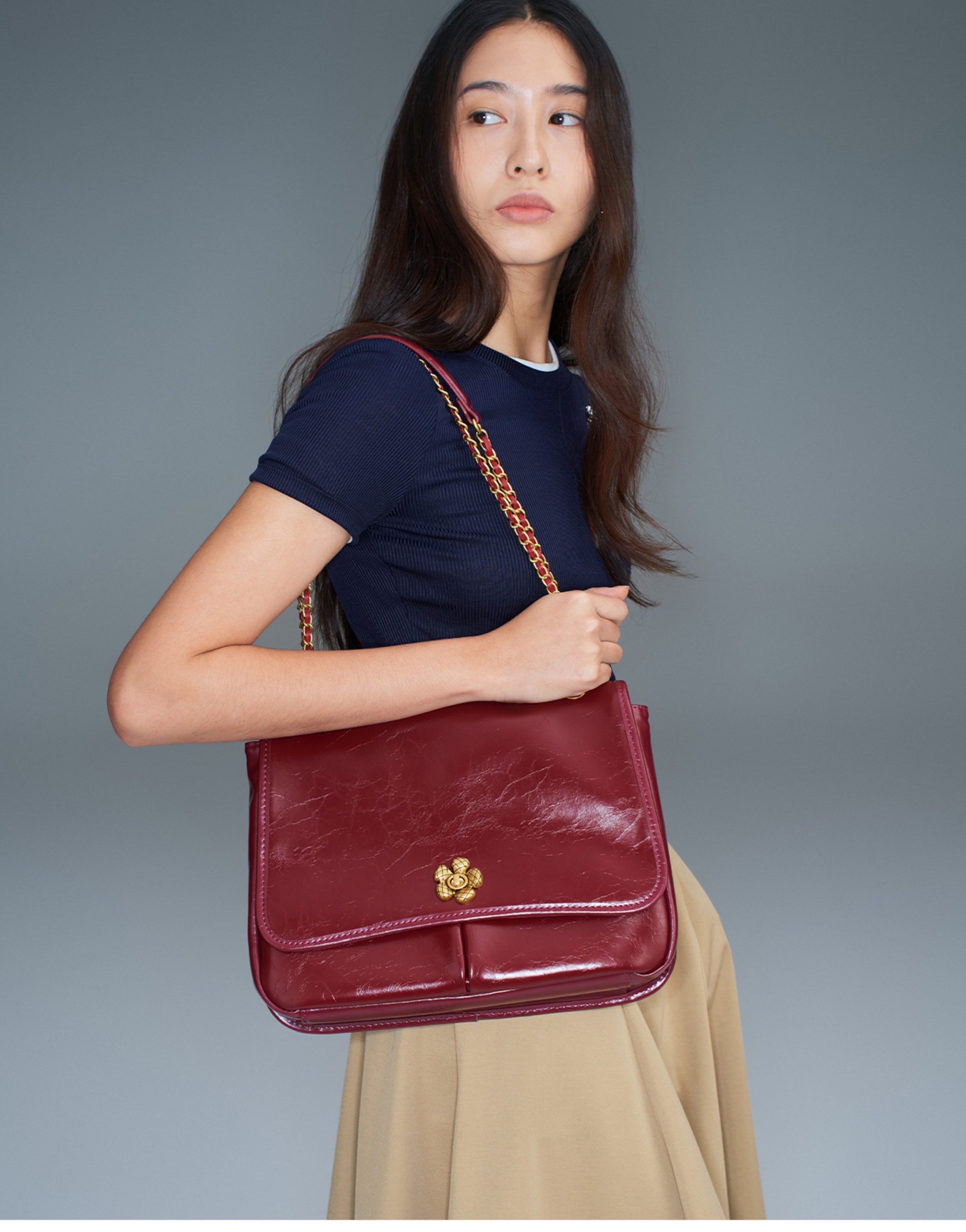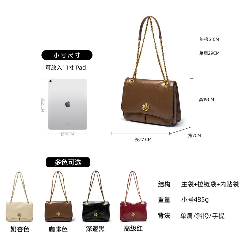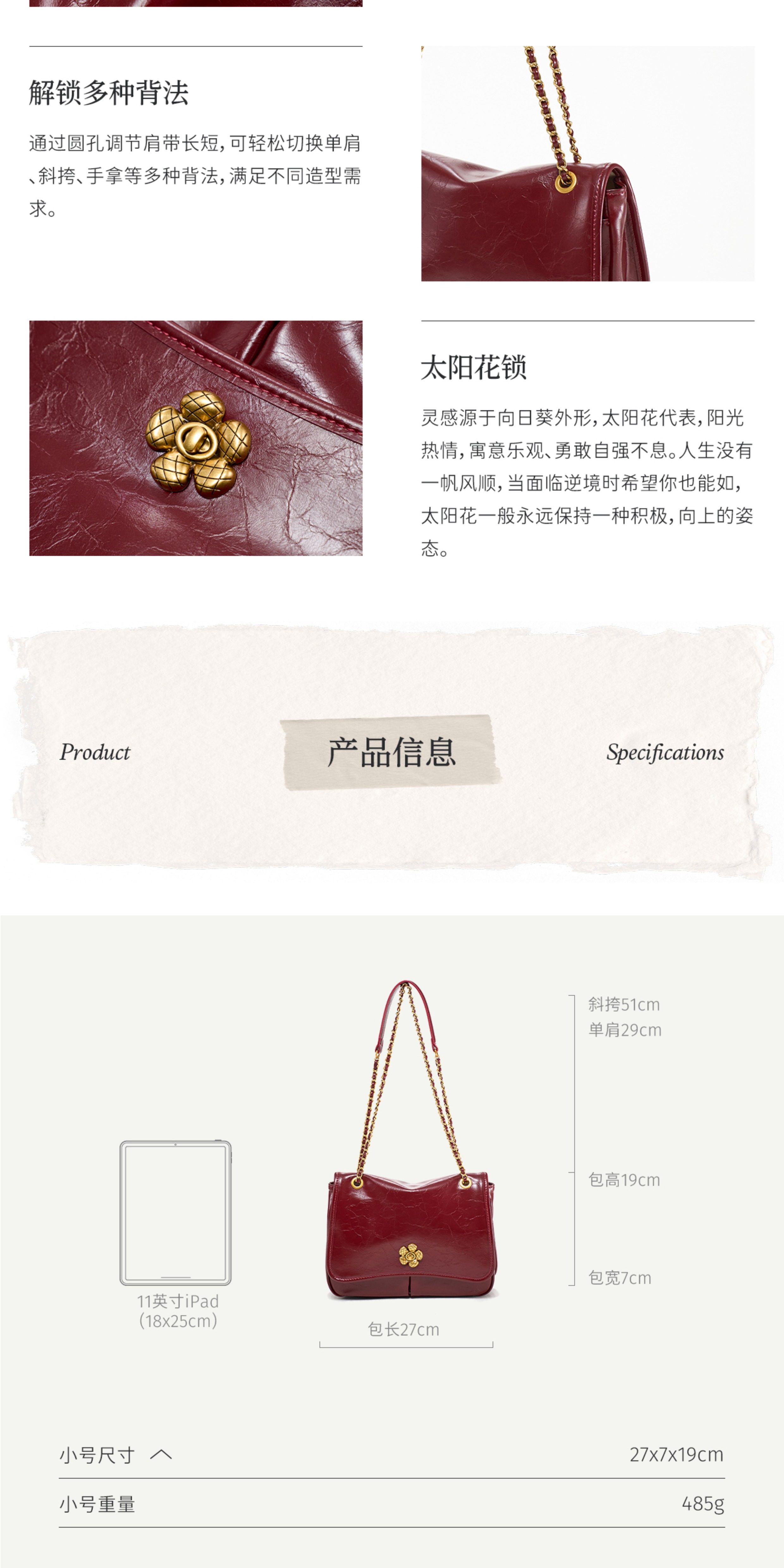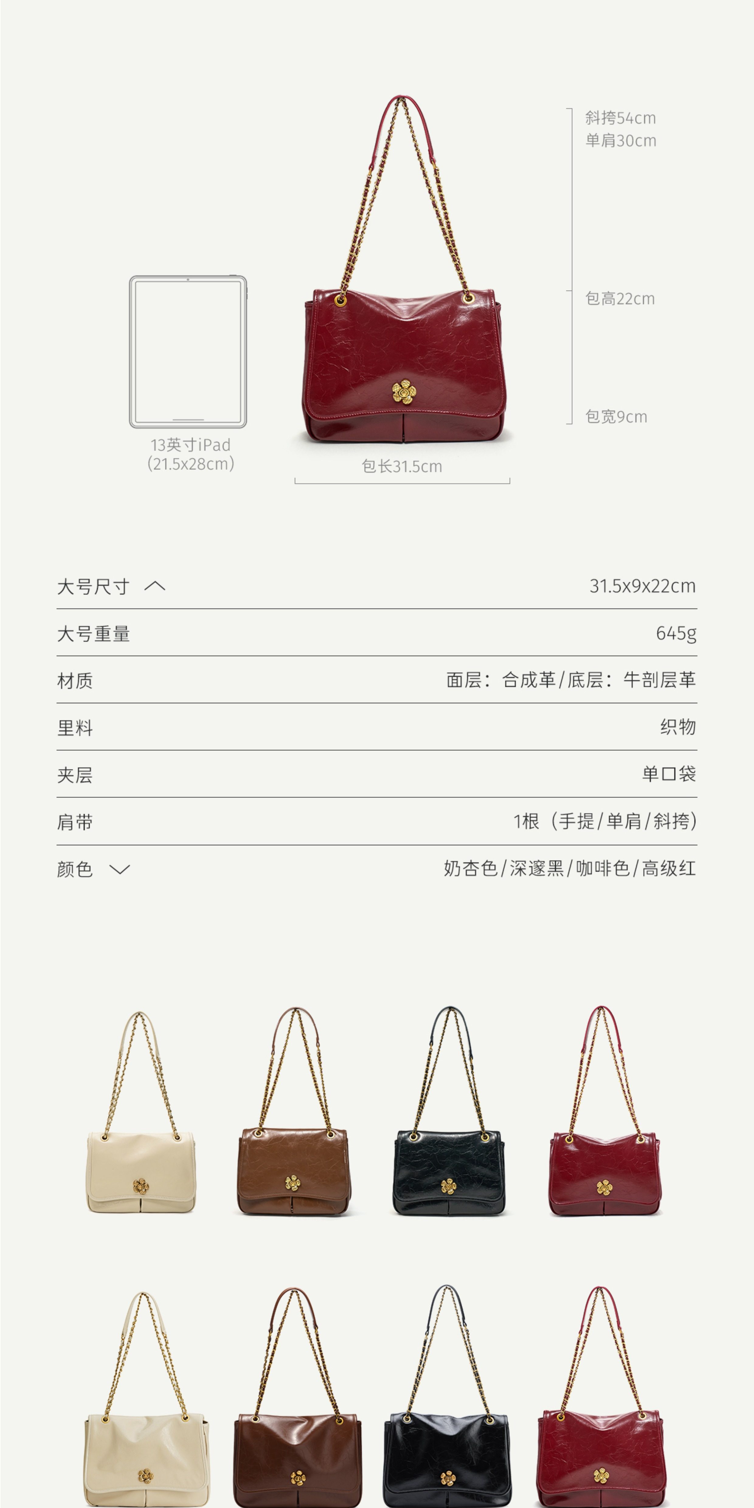 【西木汀】无微不至 链条斜挎包女新款红色婚包牛皮包包新娘礼物