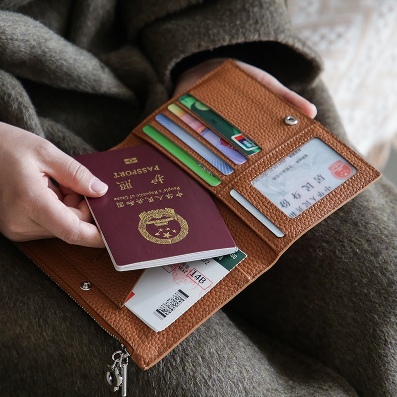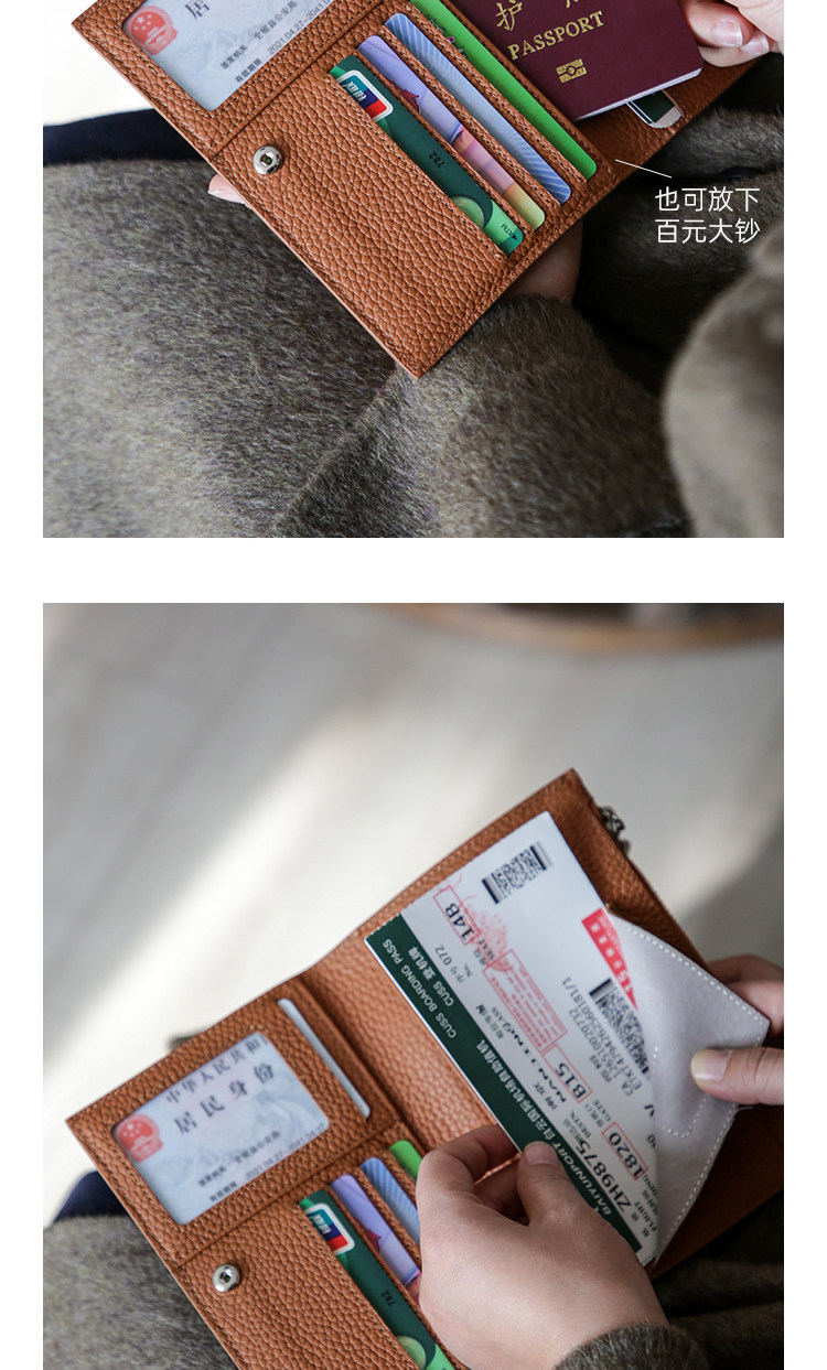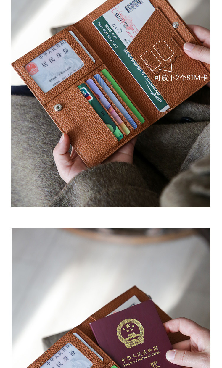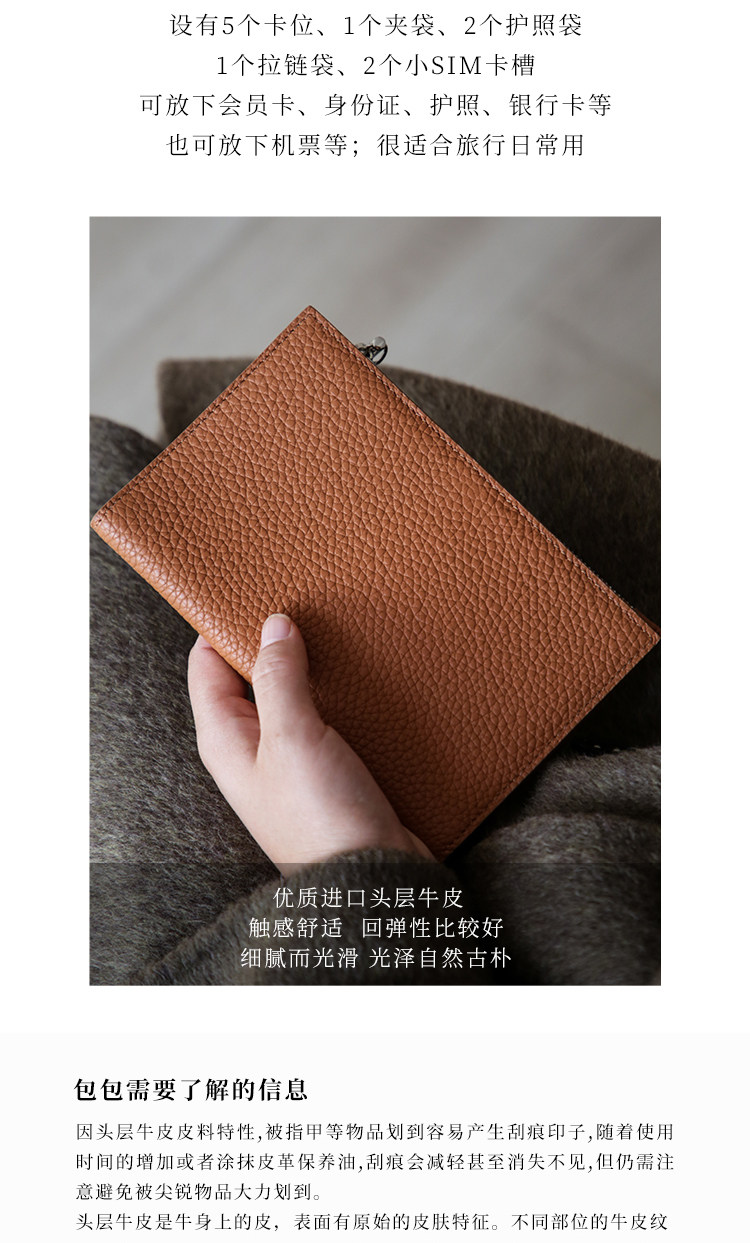 真皮简约头层牛皮拉链护照夹女钱包一体超薄便携多功能证件收纳包