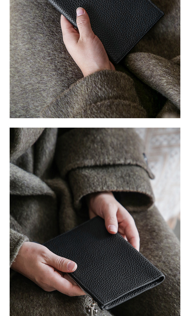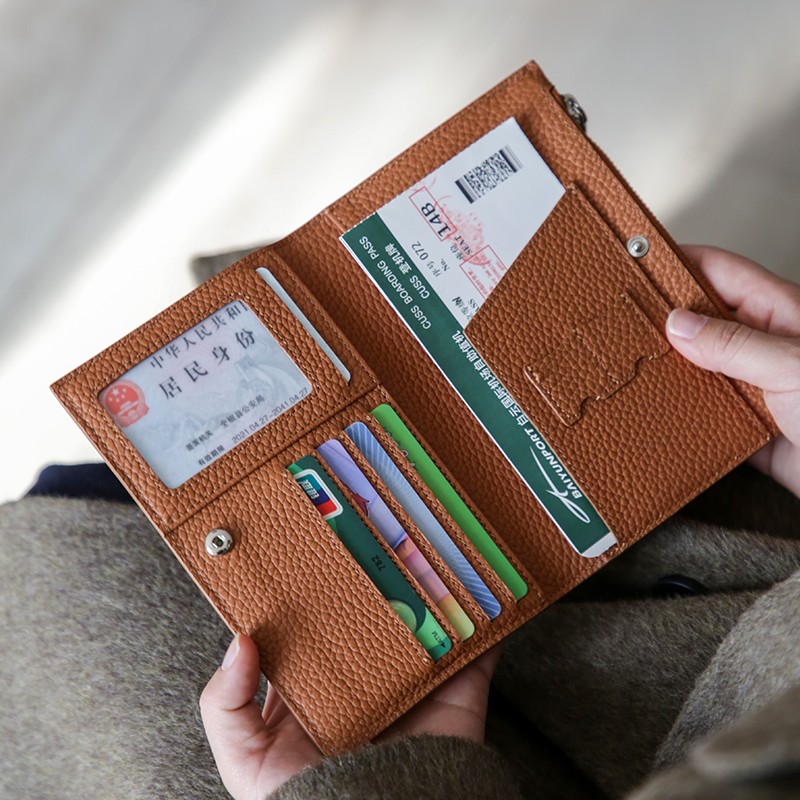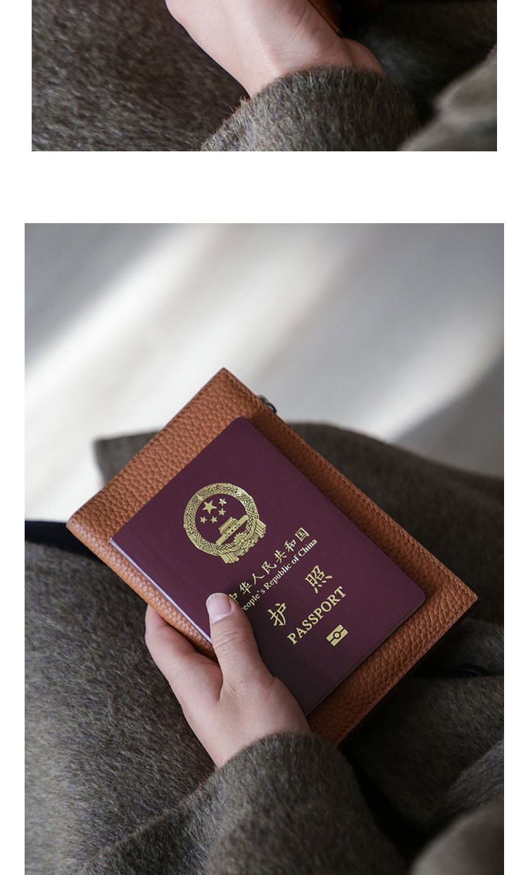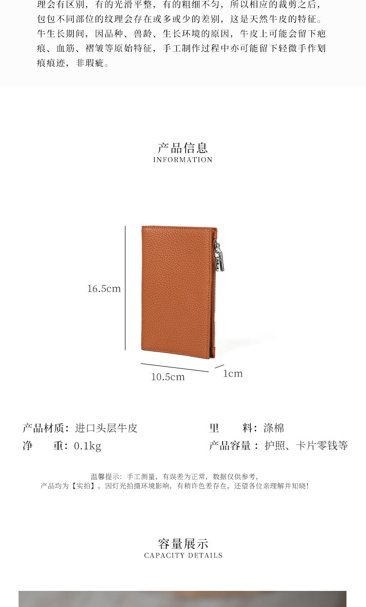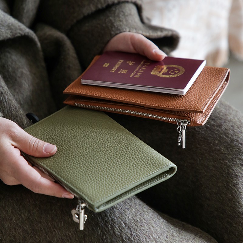 真皮简约头层牛皮拉链护照夹女钱包一体超薄便携多功能证件收纳包