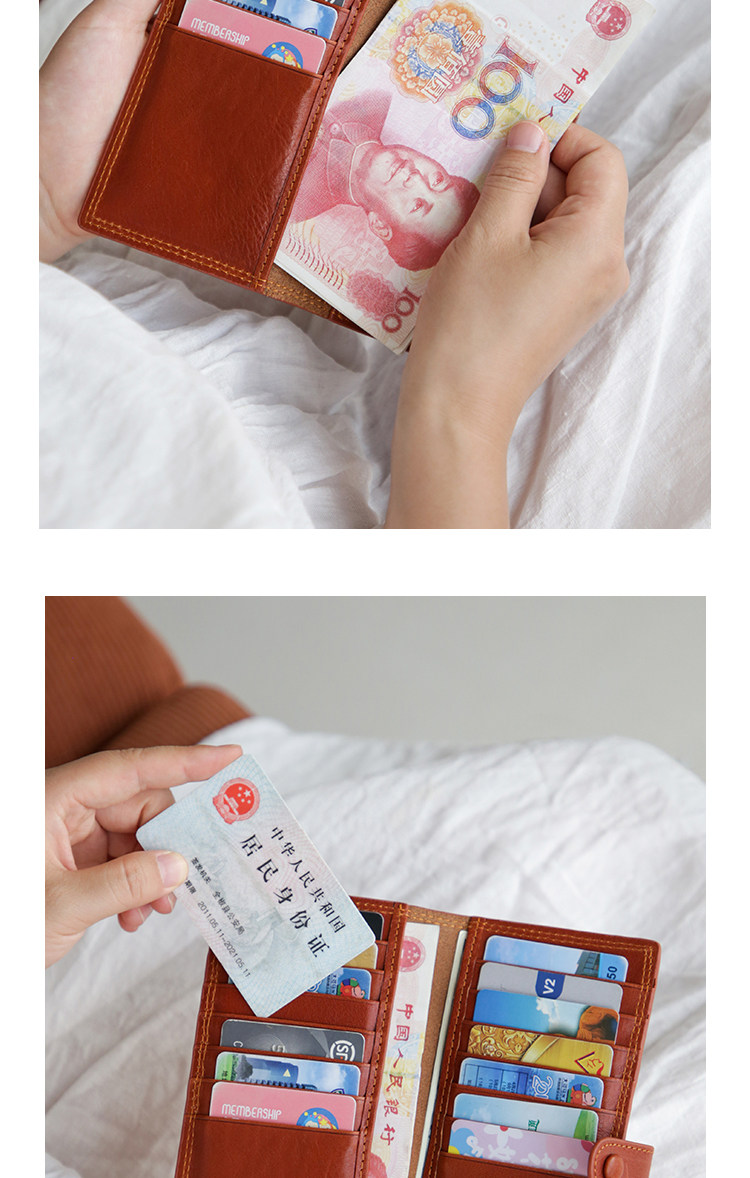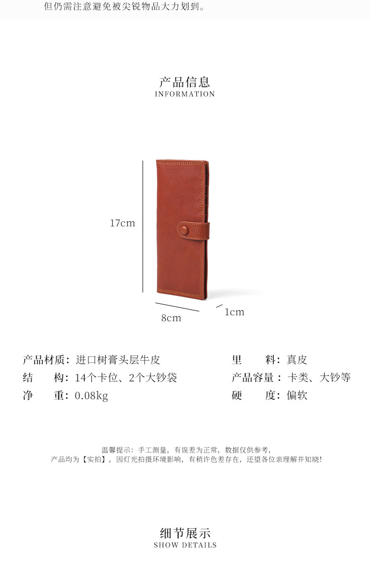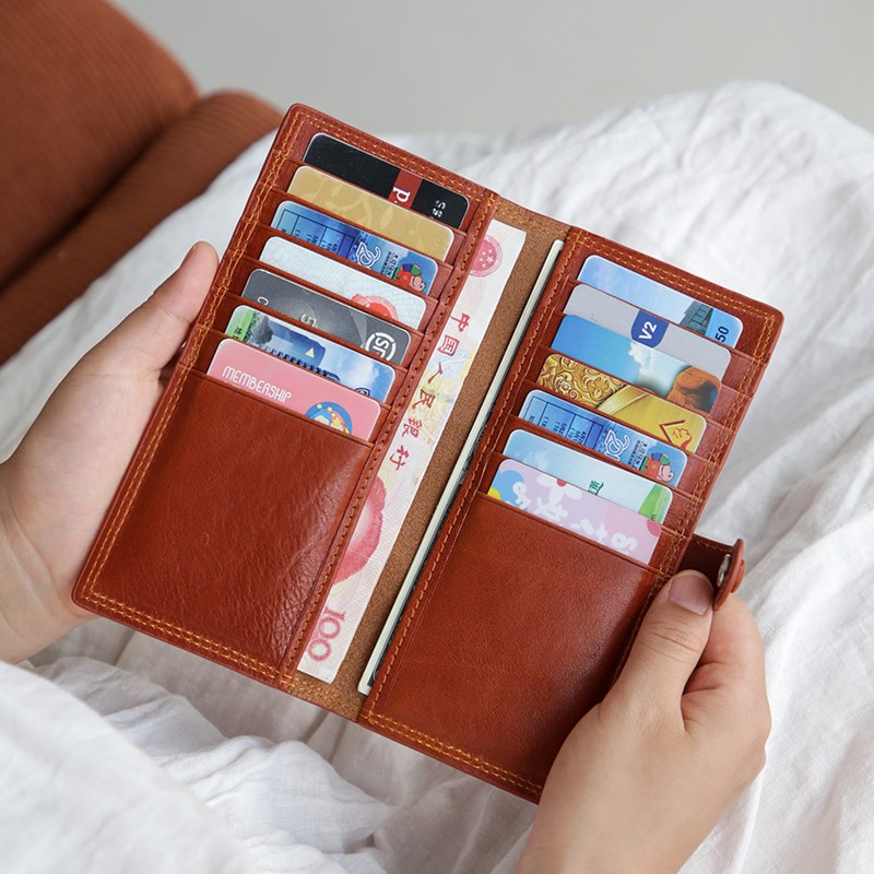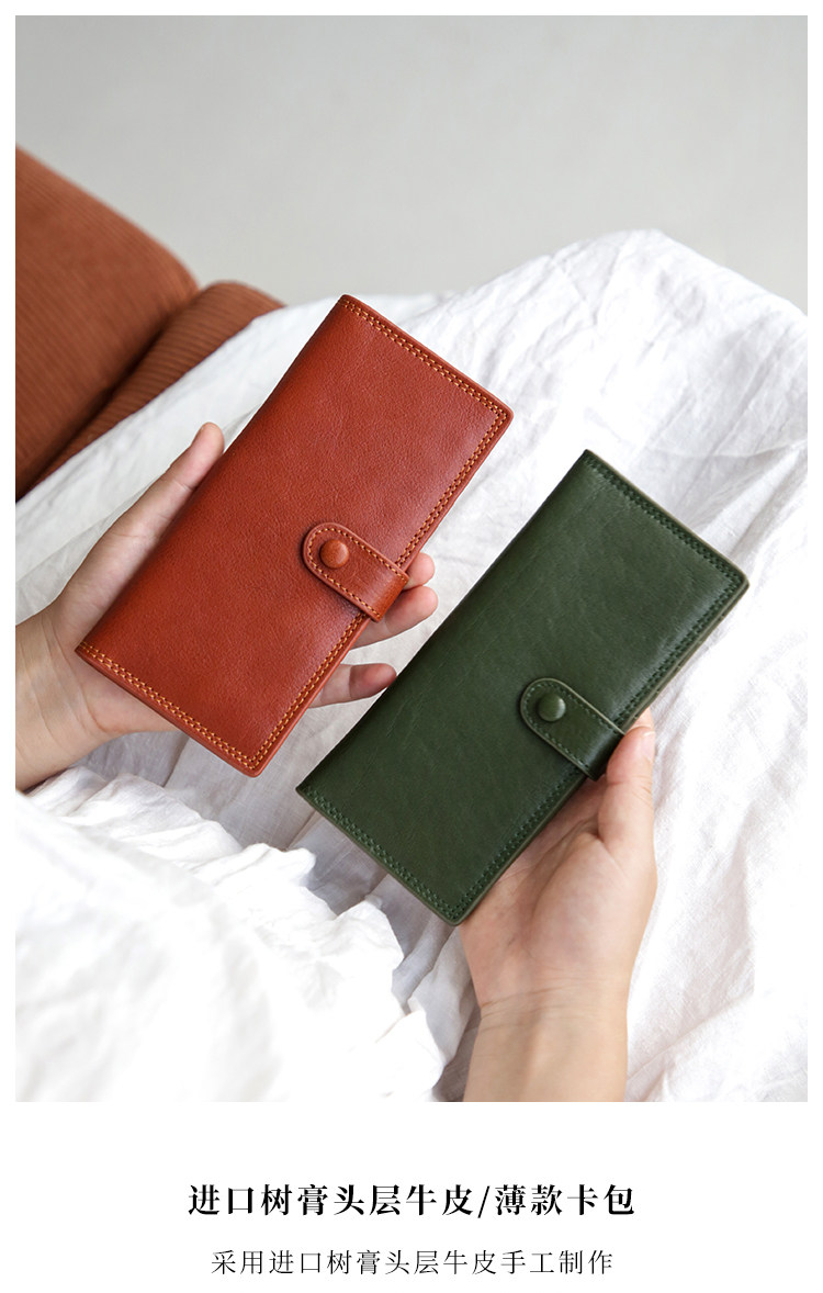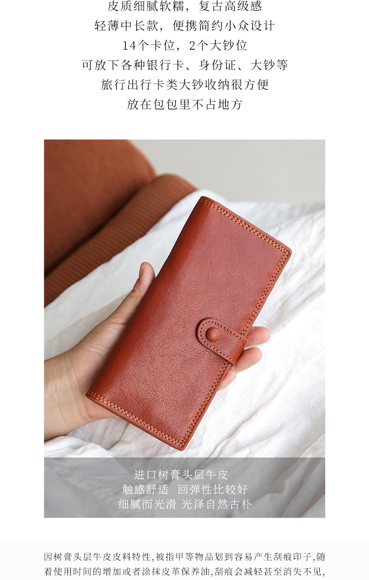 真皮复古长薄款女卡包头层牛皮大容量多卡位银行卡大钞便携钱包