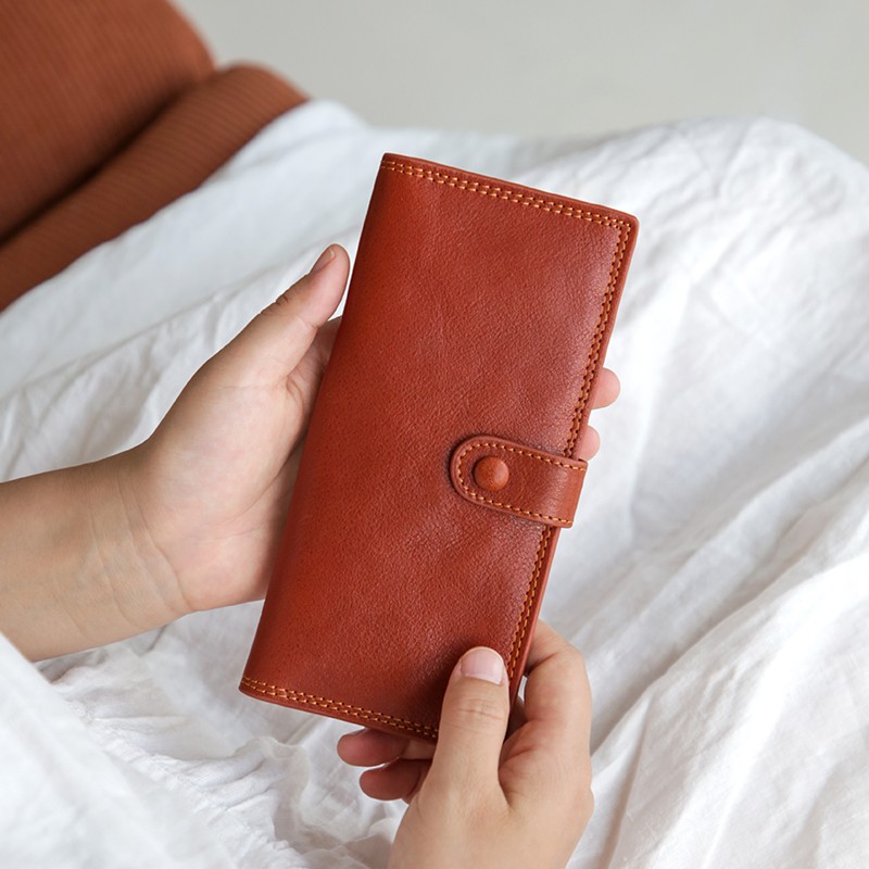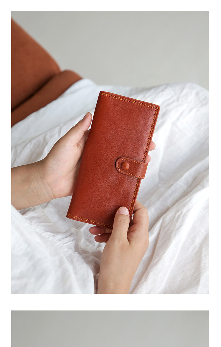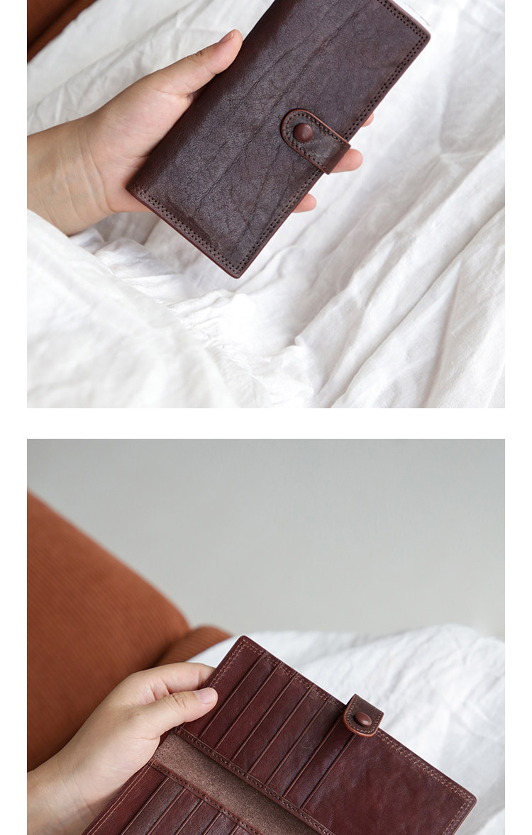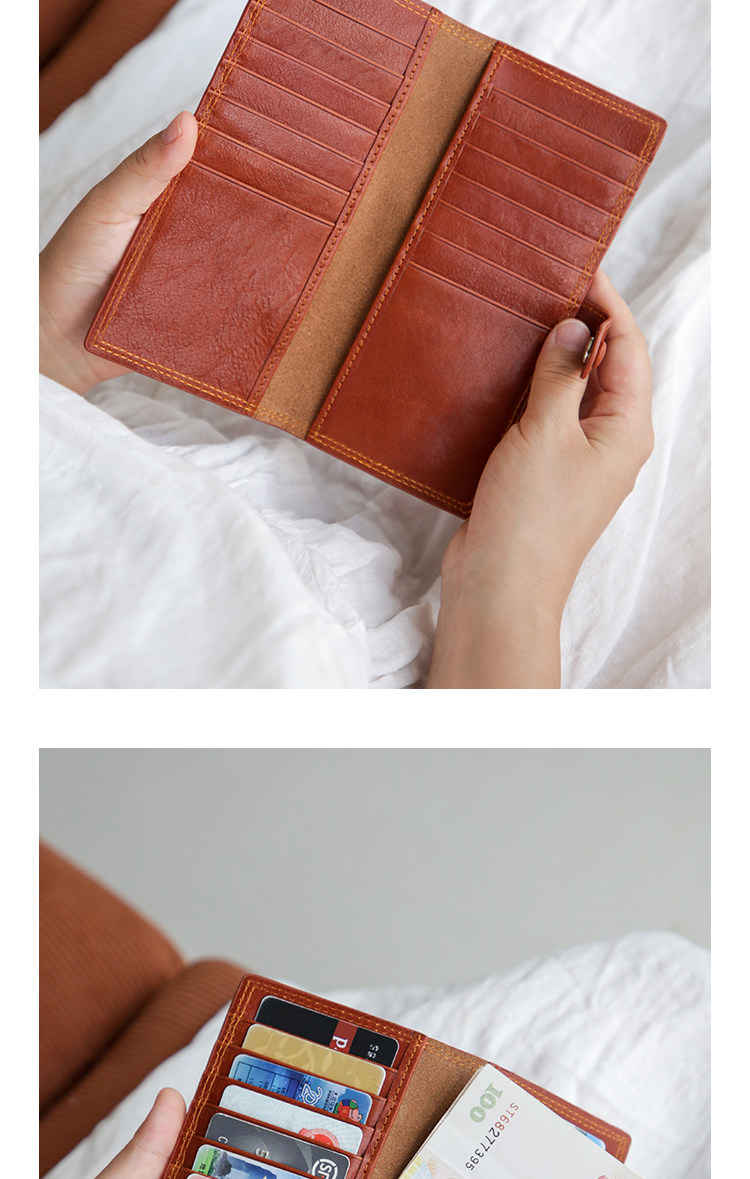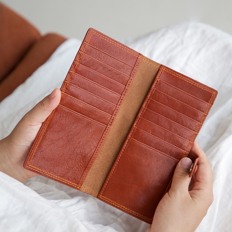 真皮复古长薄款女卡包头层牛皮大容量多卡位银行卡大钞便携钱包