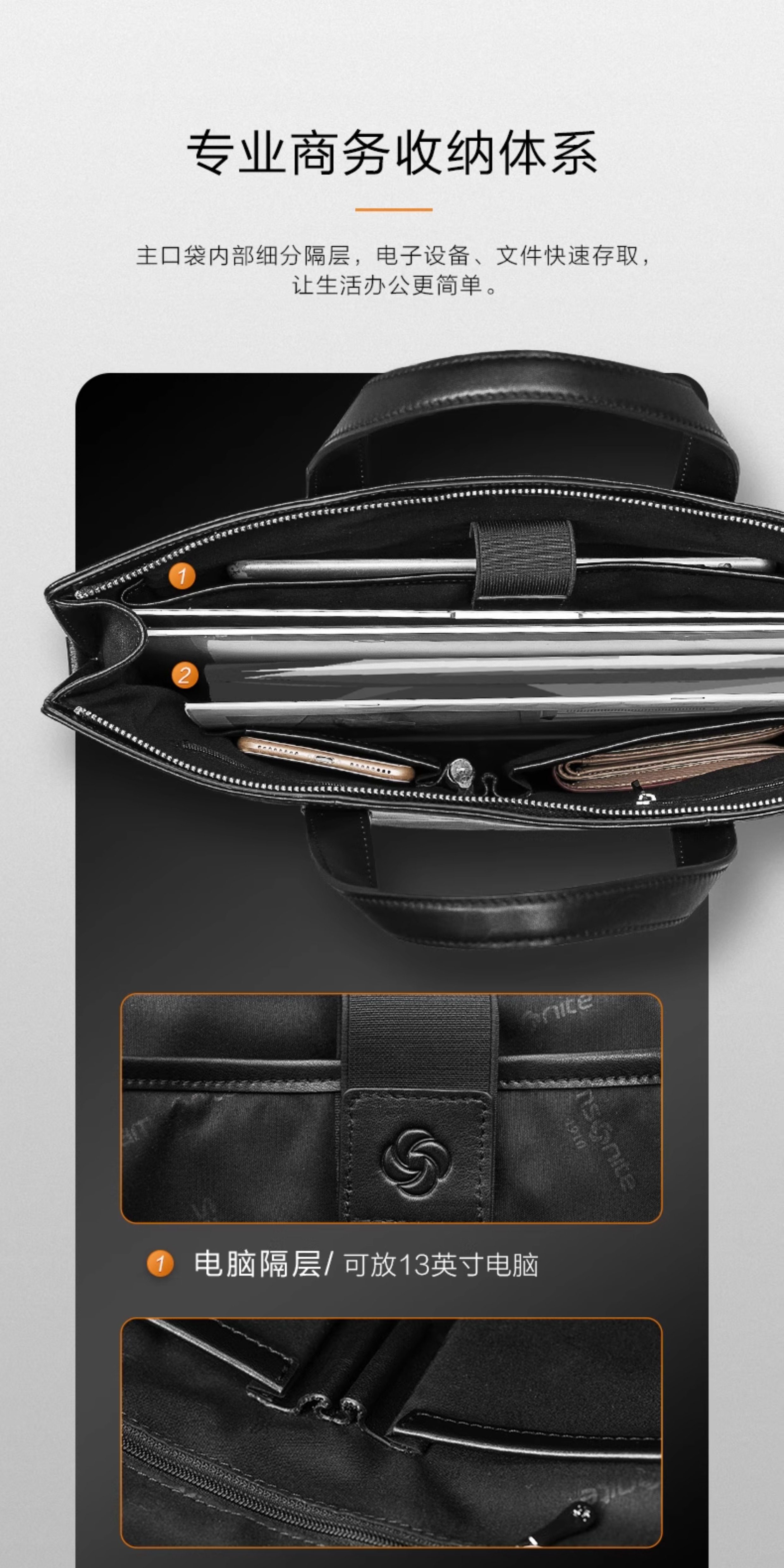 | 产品名称 : | 新秀丽公文包男士商务手提包高级斜挎包大容量电脑包单肩包TK9 |