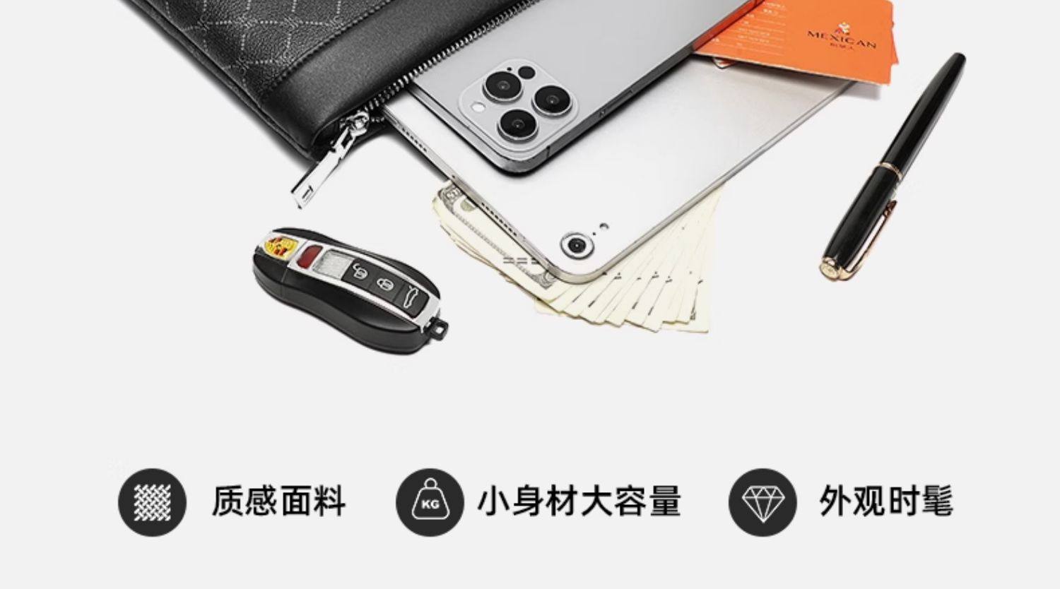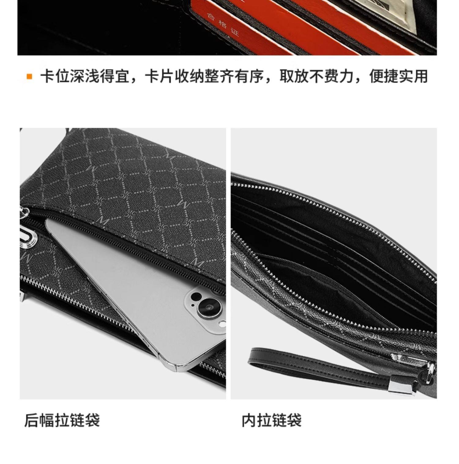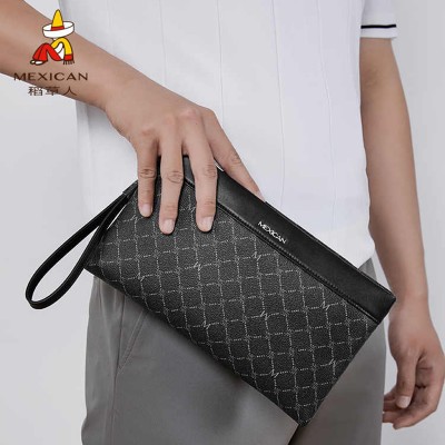 稻草人手拿包男士新款大容量信封包软皮夹商务多卡位手抓长款钱包
