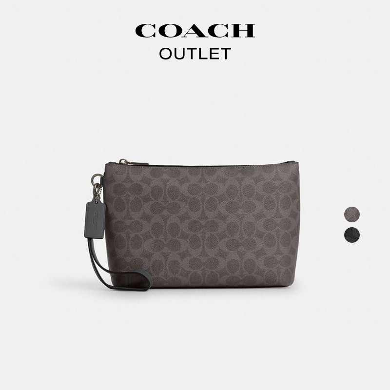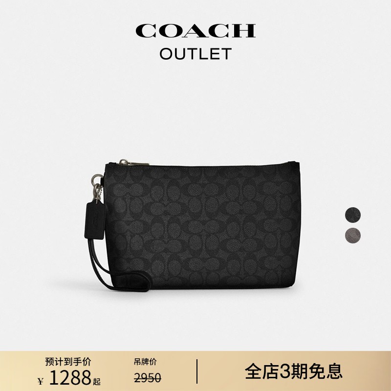 【新品】COACH/蔻驰奥莱男士黑色老花手拿包腕包零钱包高级...