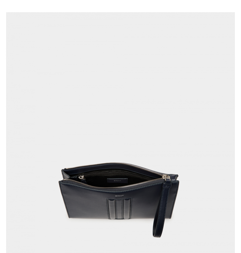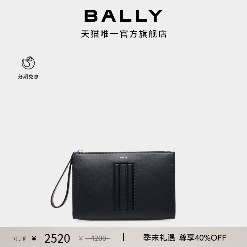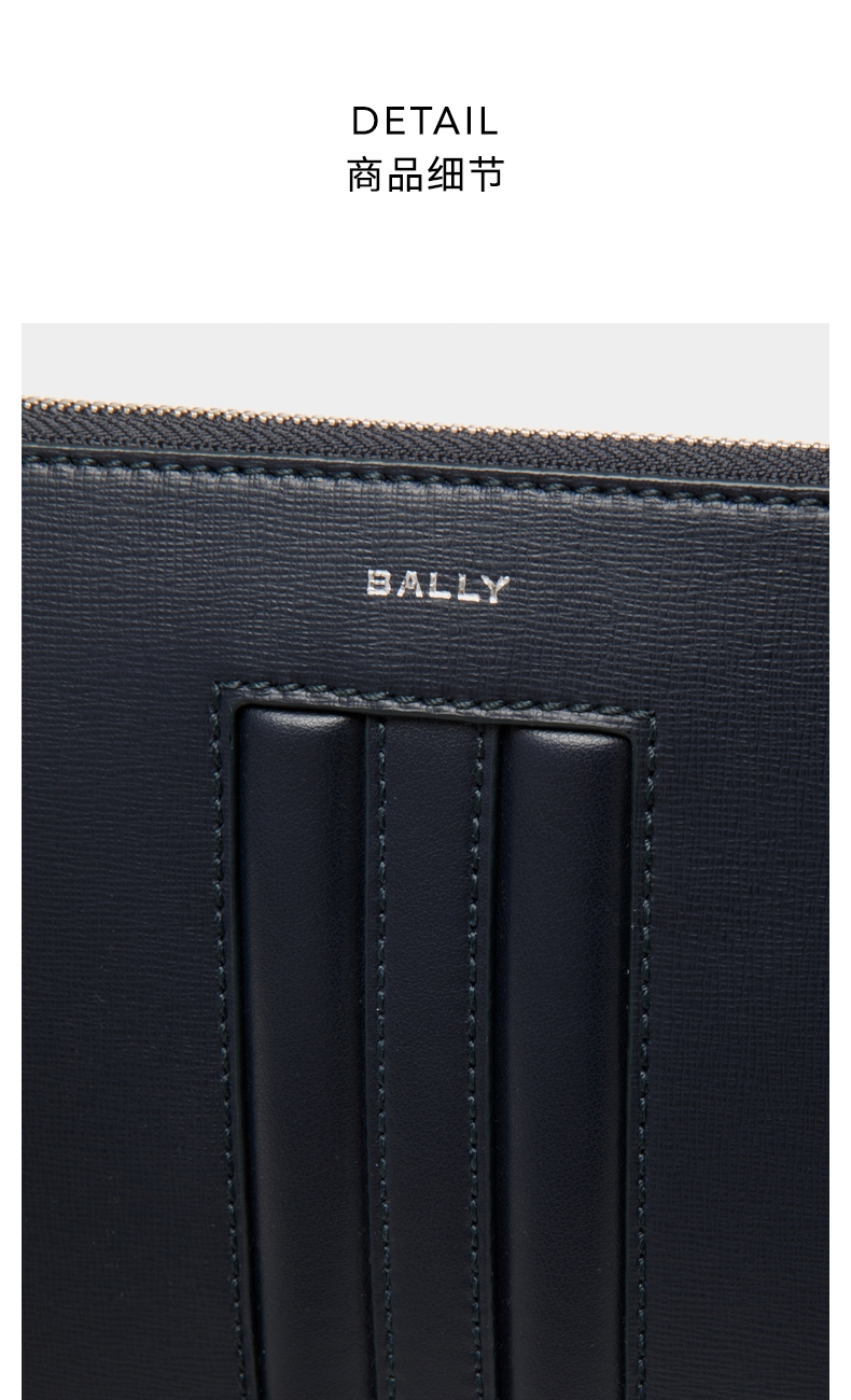 【尊享特惠】BALLY巴利深蓝色牛皮革男士手拿包631028...