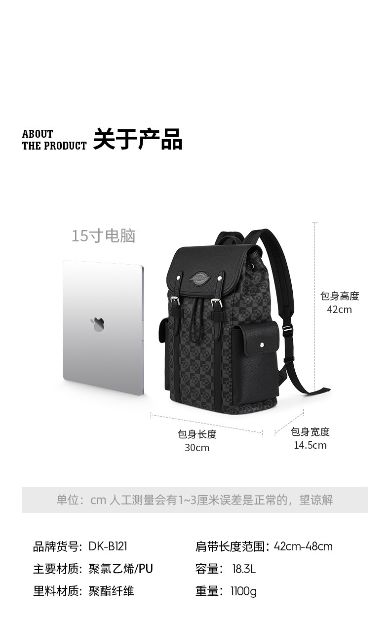 Dickies双肩背大容量电脑旅行男士商务出差初中高中大学生...