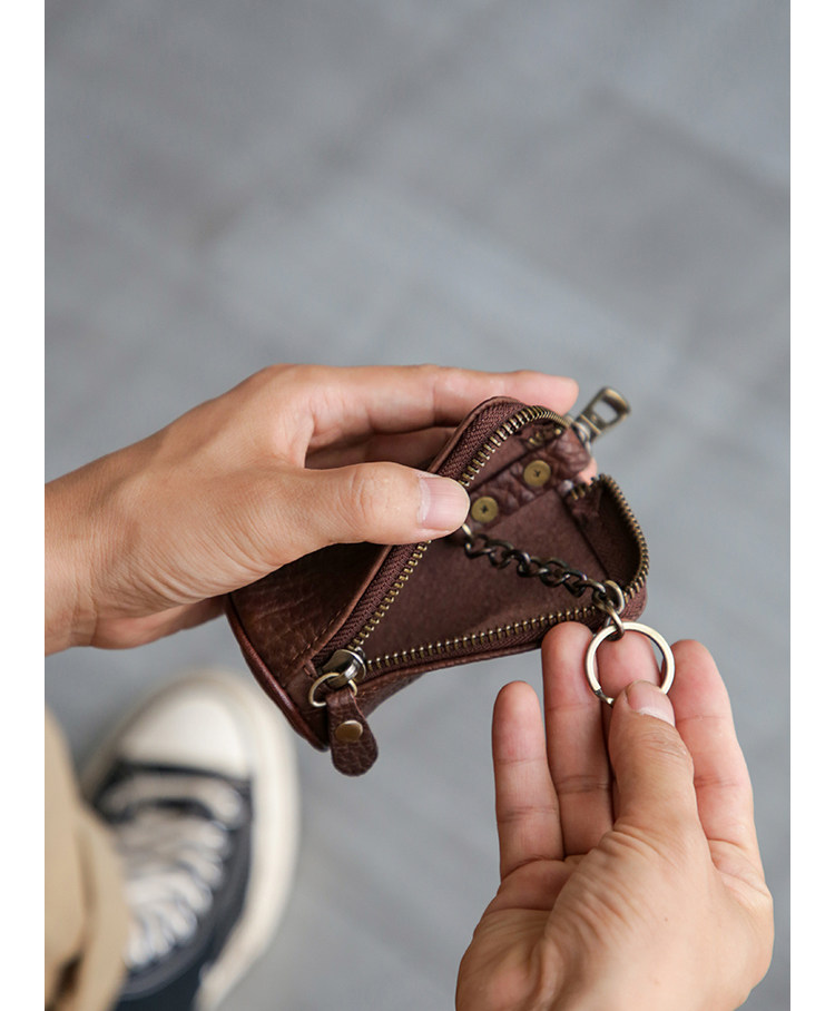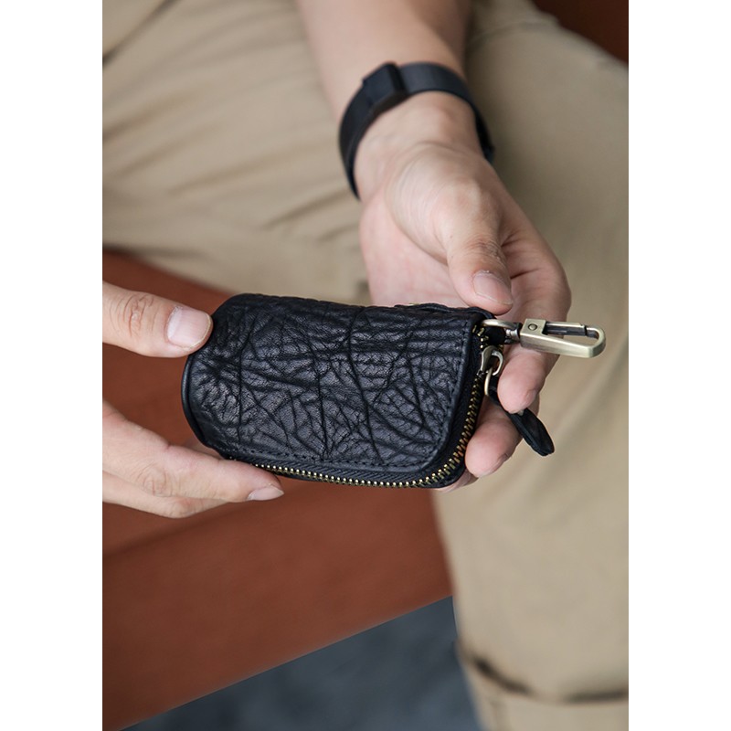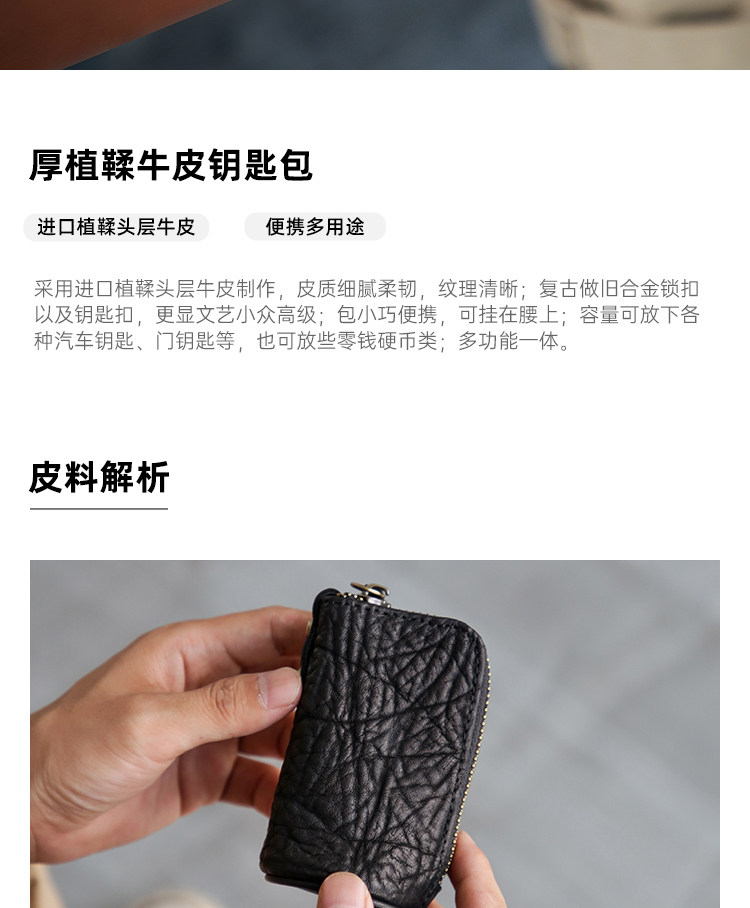 古造真皮男士小钥匙包头层牛皮汽车钥匙多功能硬币零钱迷你锁匙包