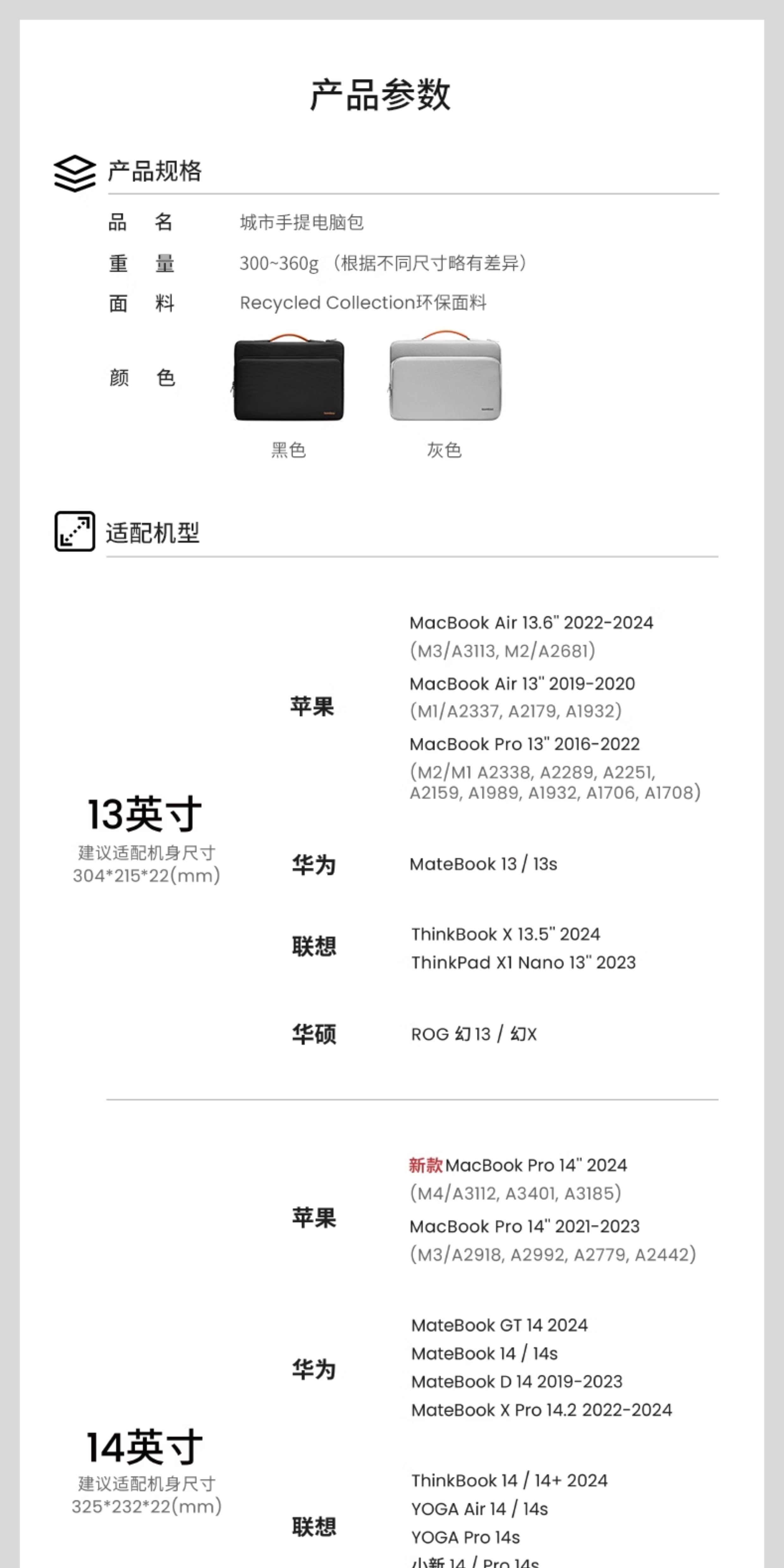 tomtoc手提电脑包16寸笔记本内胆包14寸M5保护套适用...