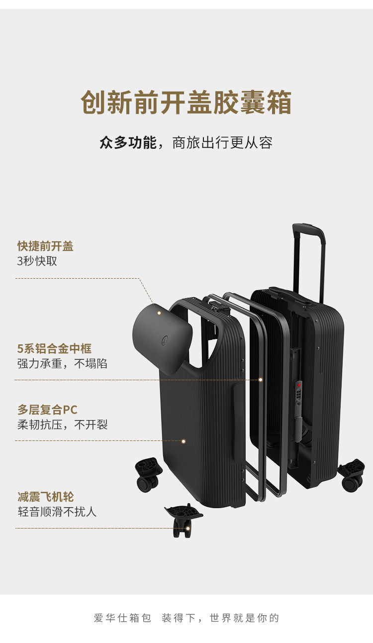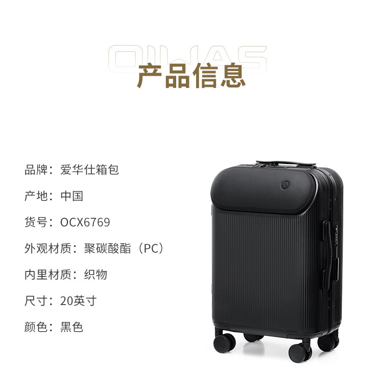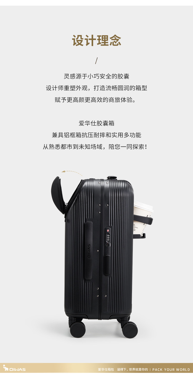 | 产品名称 : | 爱华仕胶囊箱行李箱前置开口登机箱20寸轻便拉杆箱耐用加厚旅行箱 |