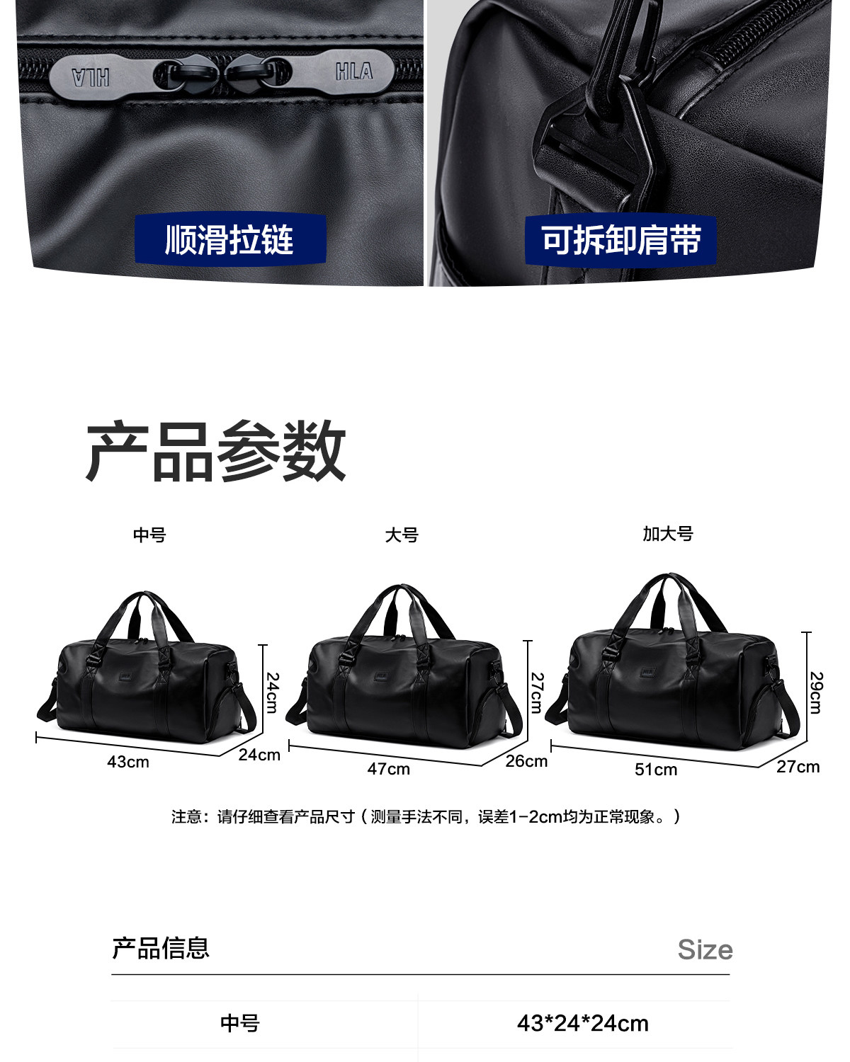 | 产品名称 : | HLA/海澜之家短途旅行包女轻便大容量出差手提旅游包行李袋男健身 |