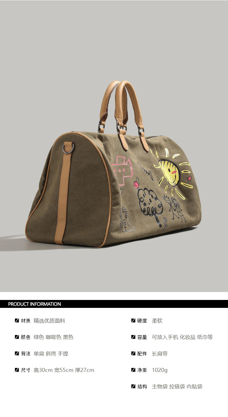 UR卡通印花短途旅行袋2025新款大容量登山包男女通用健身包...