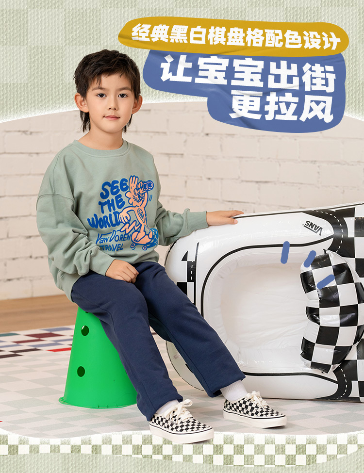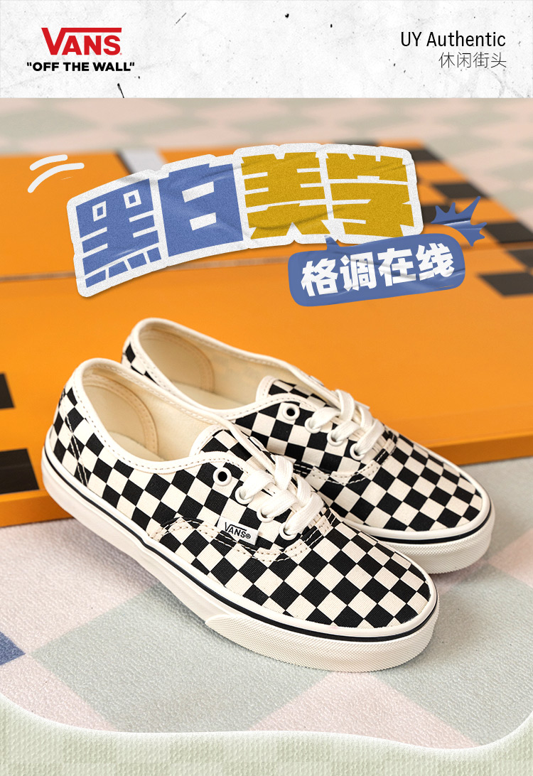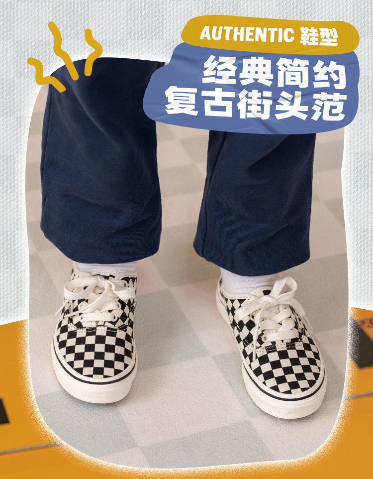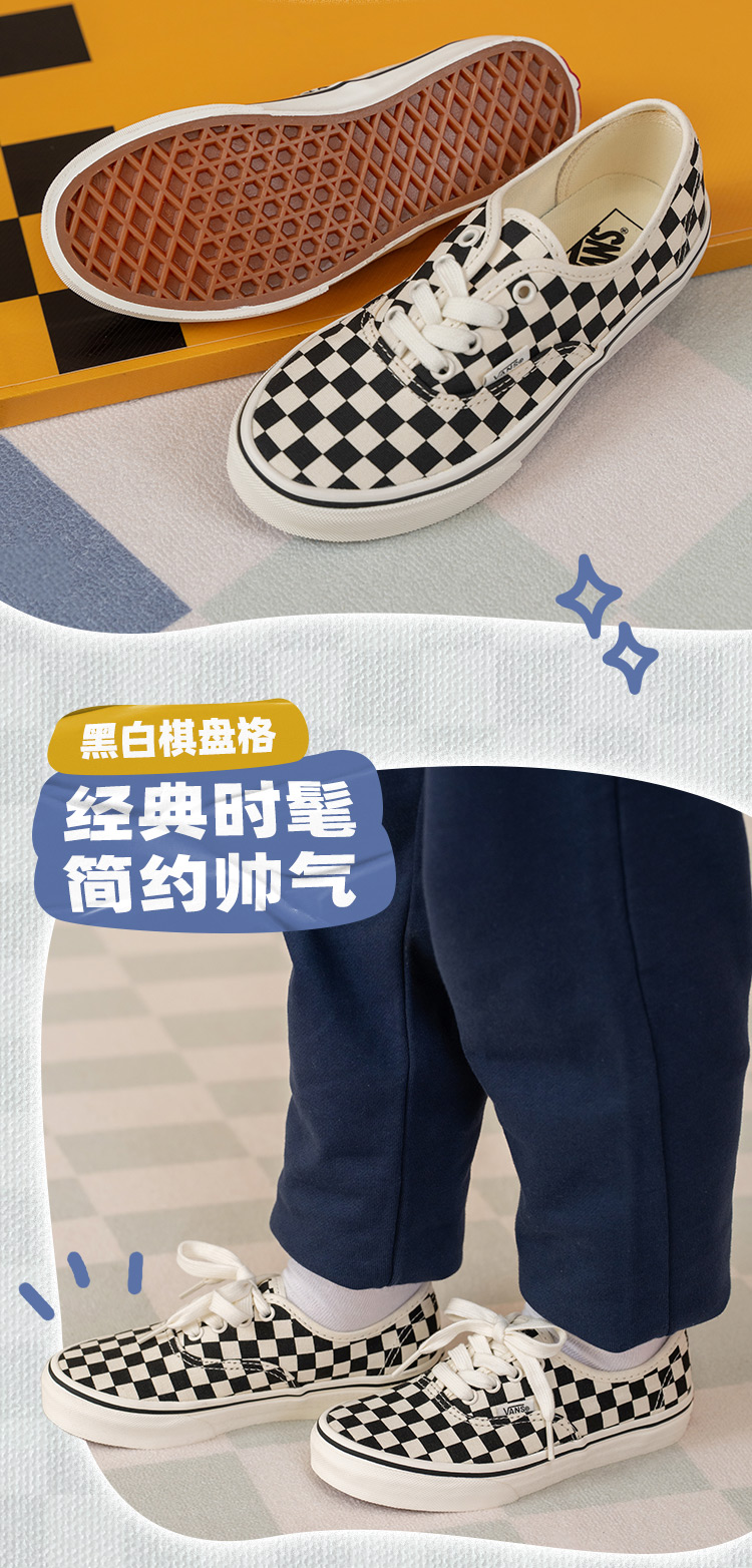 Vans范斯童鞋官方 Authentic黑白棋盘格休闲简约中...