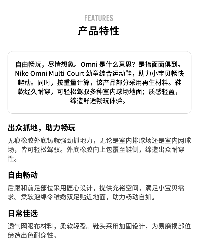 | 产品名称 : | 耐克幼童轻便综合运动鞋冬季男女童透气室内网面NIKE OMNI DM9026 |